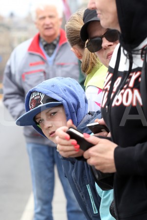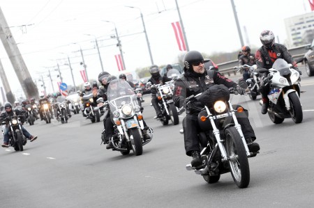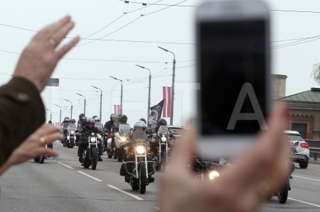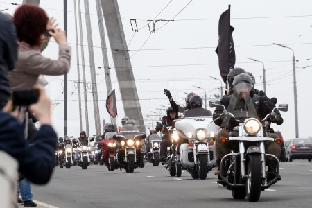 Мотоциклисты собрались около торгового центра "Mols", чтобы принять ...