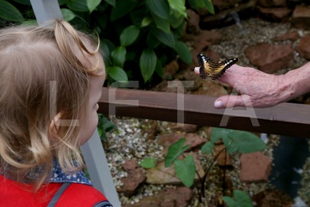 Meitene Latvijas Universitātes Botāniskā dārza tropu tauriņu mājā.