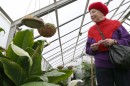 Apmeklētāja Latvijas Universitātes Botāniskā dārza tropu tauriņu mājā.