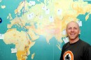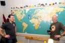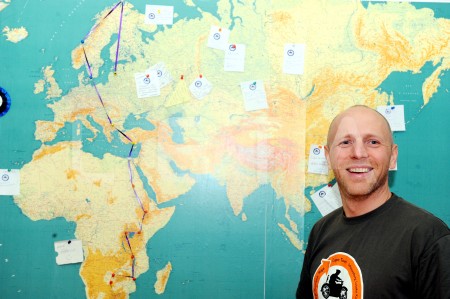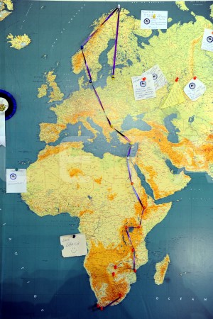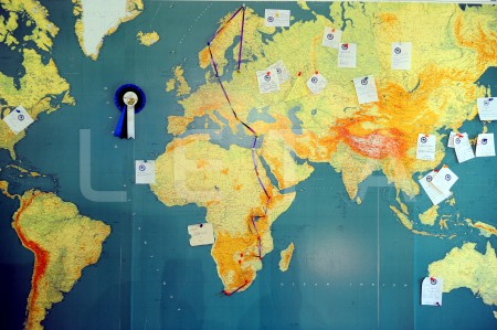 Pasaules karte preses konferencē par motoekspedīciju "2 Rati 2 Ragi", ...