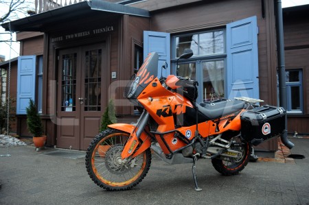Motocikls preses konferencē par motoekspedīciju "2 Rati 2 Ragi", ...
