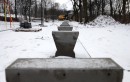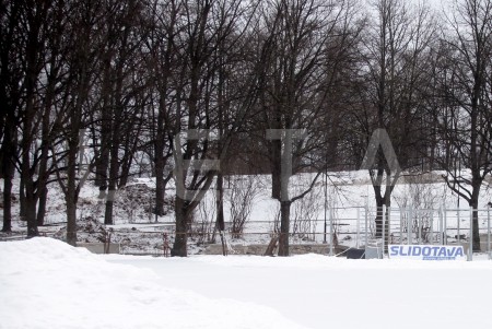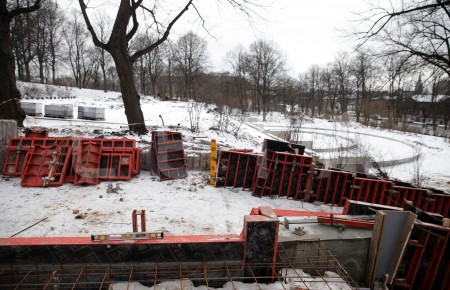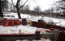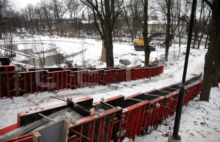 Nožogotais laukums Grīziņkalnā, kur notiek parka atjaunošanas darbi.