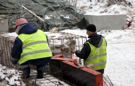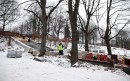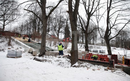 Strādnieki Grīziņkalnā, kur notiek parka atjaunošanas darbi.