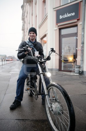 Velosipēdists Uzvaras bulvārī pie velodzīvesveida veikala "Brūklene", ...