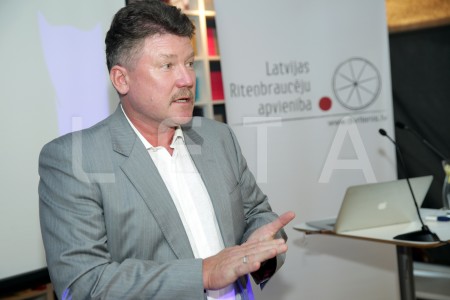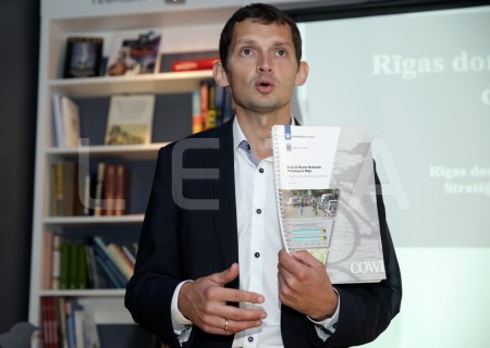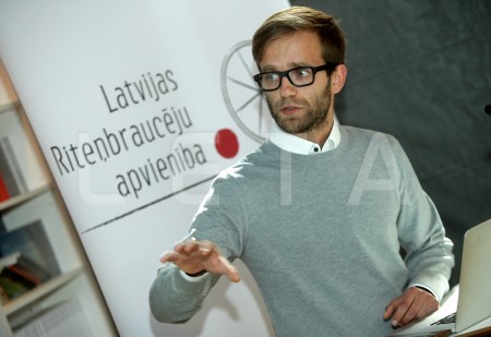 Velosatiksmes plānotājs Elmārs Daniševskis prezentē sagatavotās Rīgas ...