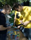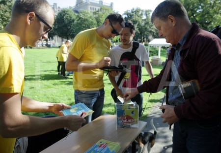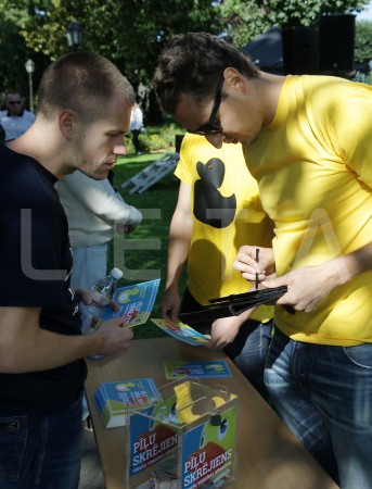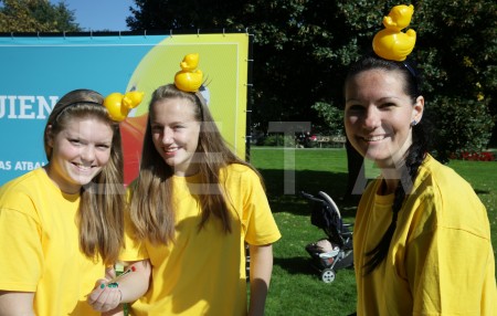 Cilvēki ziedo un reģistrējas labdarības akcijā "Pīļu skrējiens", lai ...