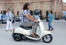 Meitenes izmēģina SIA "Fixman" uzstādīto interaktīvo spēļu laukuma ...