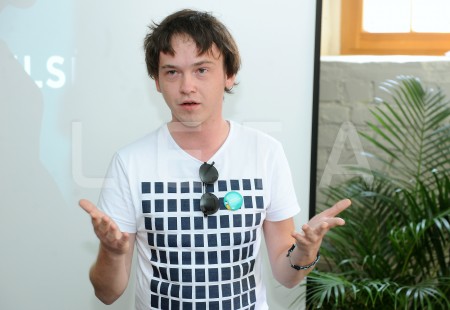 Gudrais pilsētnieks Toms Alsbergs piedalās preses konferencē, kurā ...