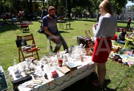 Brīvdabas krāmu tirdziņš skvērā pie Sv.Pāvila baznīcas.