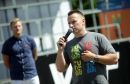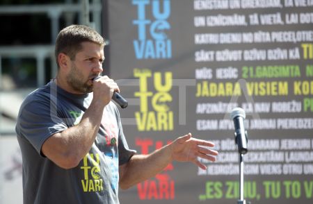 Kampaņas idejas autors Raimonds Elbakjans uzrunā klātesošos sociālā ...