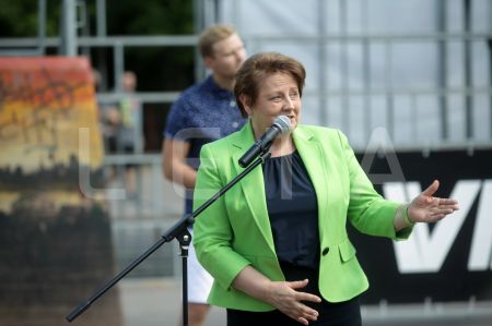 Ministru prezidente Laimdota Straujuma, pasākuma vadītājs, ...