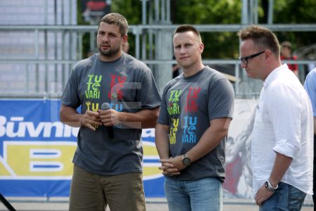 Kampaņas idejas autors Raimonds Elbakjans (no kreisās), Latvijas ielu ...