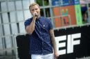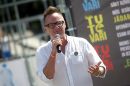 Portāla "draugiem.lv" runasvīrs Jānis Palkavnieks uzrunā klātesošos ...