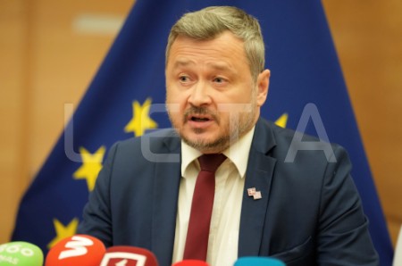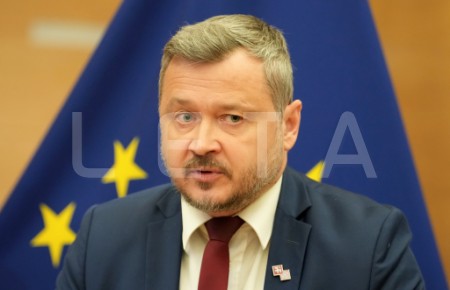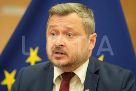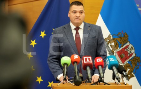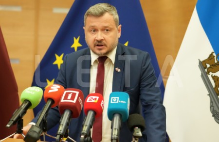 Rīgas domes priekšsēdētāja vietnieks Edvards Ratnieks piedalās preses ...