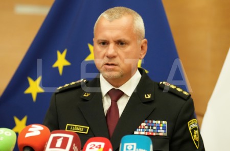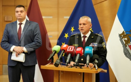 Rīgas pašvaldības policijas priekšnieks Juris Lūkass piedalās preses ...