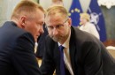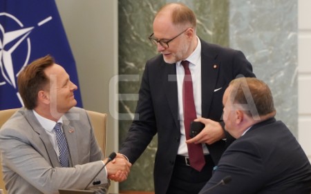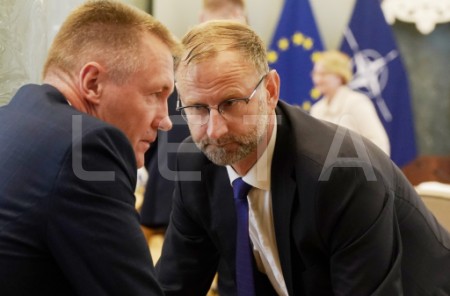 Aizsardzības ministrs Andris Sprūds (no kreisās) un iekšlietu ...