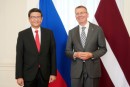 Valsts prezidents Edgars Rinkēvičs (no labās) un Kambodžas vēstnieks ...