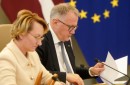 Izglītības un zinātnes ministre Dace Melbārde un finanšu ministrs ...