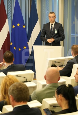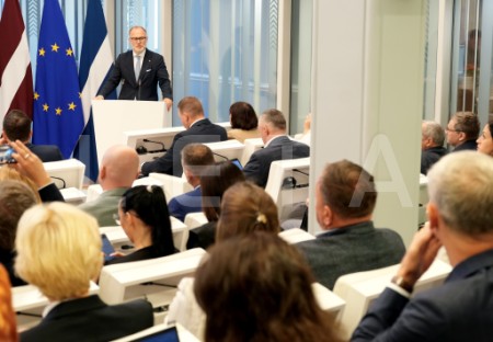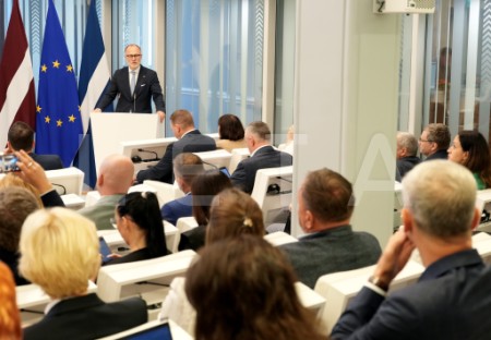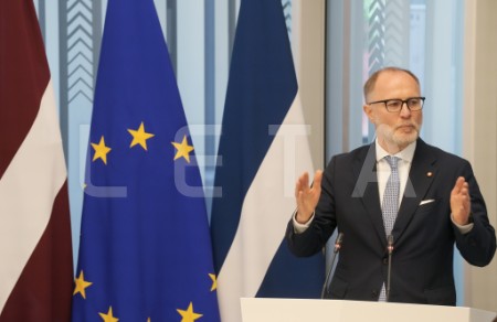 Aizsardzības ministrs Andris Sprūds (centrā) piedalās konferencē ...