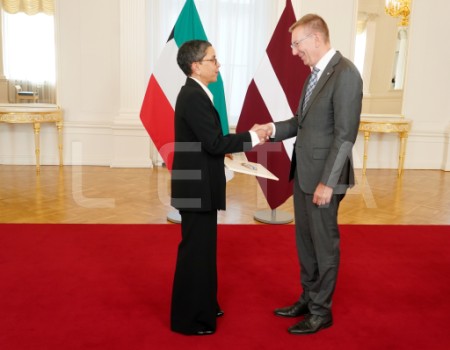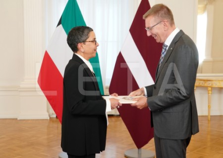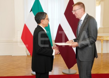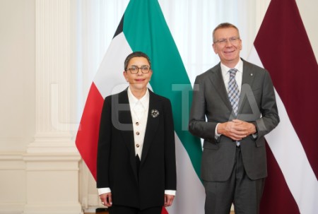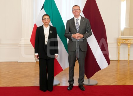 Valsts prezidents Edgars Rinkēvičs un Kuveitas vēstniece Latvijā Rīma ...