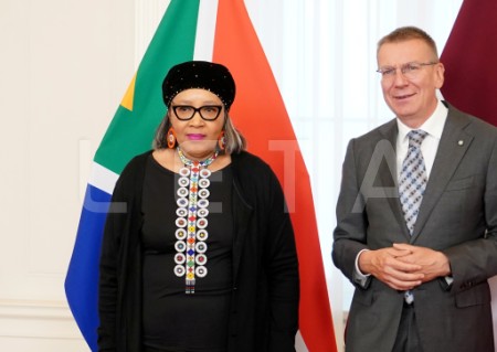 Valsts prezidents Edgars Rinkēvičs un (no labās) Dienvidāfrikas ...