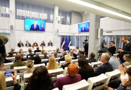 Saeimas priekšsēdētājas biedre Zanda Kalniņa-Lukaševica un Saeimas ...