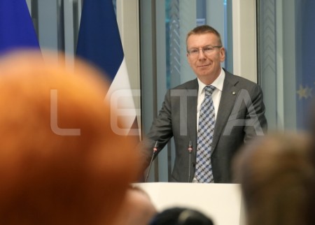 Valsts prezidents Edgars Rinkēvičs (no labās) un Viedās ...