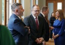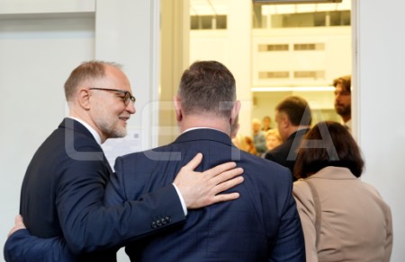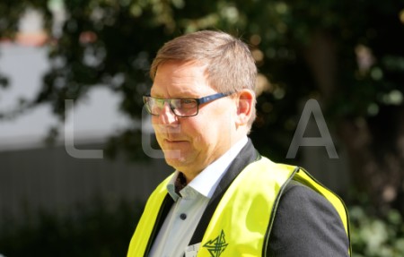 Daugavpils domes priekšsēdētājs Andrejs Elksniņš (centrā) piedalās ...