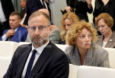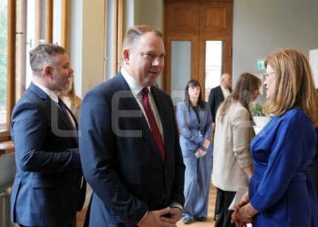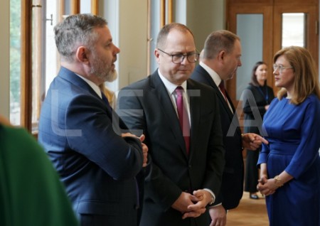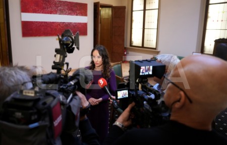 Saeimas priekšsēdētājas biedre Zanda Kalniņa-Lukaševica (no labās) ...