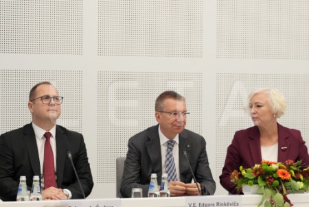 Valsts prezidents Edgars Rinkēvičs un Saeimas priekšsēdētāja Daiga ...