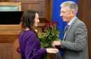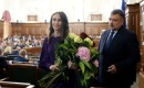 Saeimas deputāts Andrejs Judins pasniedz ziedus jaunievēlētajai ...