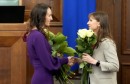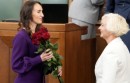 Saeimas deputāte Leila Rasima (no labās) pasniedz ziedus ...