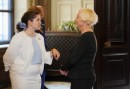 Saeimas priekšsēdētājas biedre Zanda Kalniņa-Lukaševica (no labās) un ...