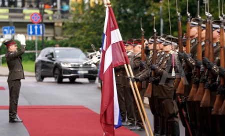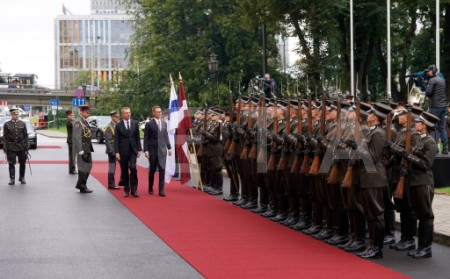 Somijas prezidenta svinīgā sagaidīšanas ceremonija laukumā pie Rīgas ...