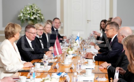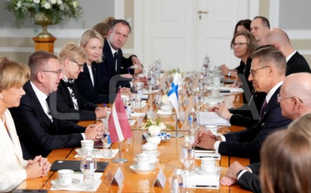 Latvijas prezidents Edgars Rinkēvičs (no labās) un Somijas prezidents ...