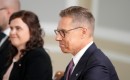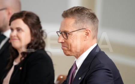Somijas prezidents Aleksandrs Stubs piedalās preses konferencē pēc ...