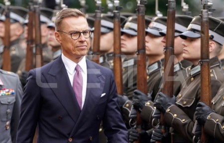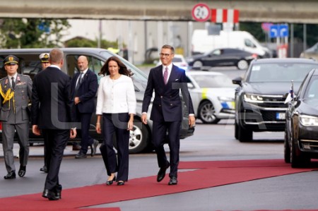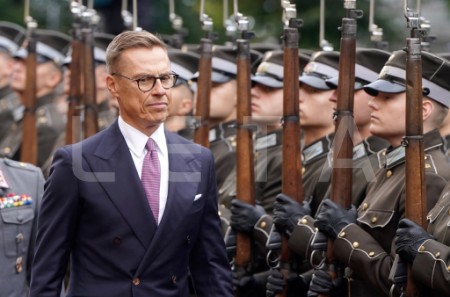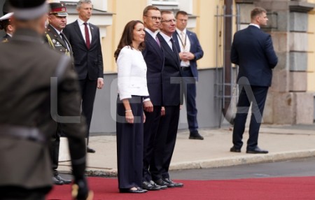 Somijas prezidents Aleksandrs Stubs svinīgajā sagaidīšanas ceremonijā ...