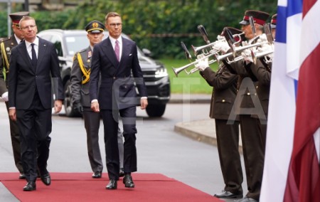 Valsts prezidents Edgars Rinkēvičs (no labās) un Somijas prezidents ...