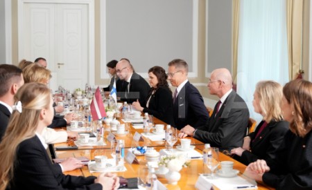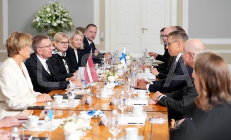 Latvijas un Somijas prezidentu delegāciju tikšanās Rīgas pilī.