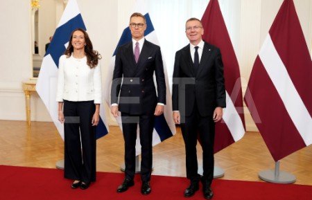 Latvijas prezidents Edgars Rinkēvičs (no labās), Somijas prezidents ...