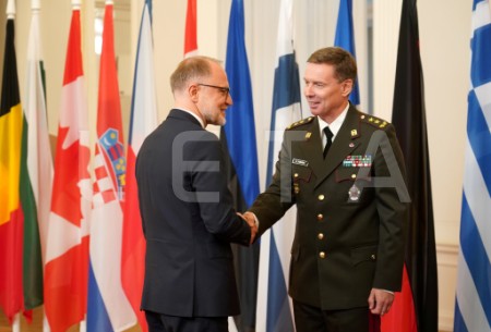 Aizsardzības ministrs Andris Sprūds (no kreisās) un NATO Militārās ...