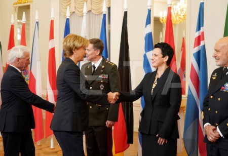 Latvijas ārlietu ministre Baiba Braže (centrā) piedalās svinīgajā ...