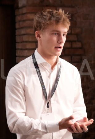 Rīgas Valsts 1. ģimnāzijas absolvents Francis Roops ar projektu ...