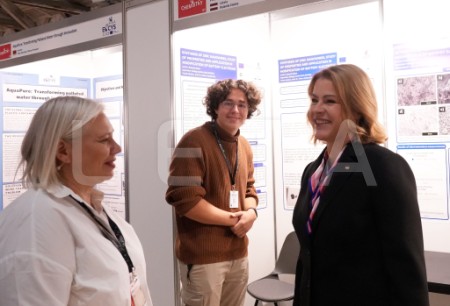 Ministru prezidente Evika Siliņa (centrā) un EUCYS projekta vadītāja ...