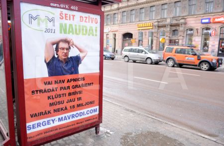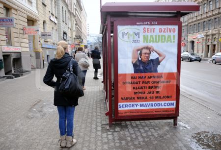 Реклама финансовой пирамиды "МММ-2011" на улицах Риги