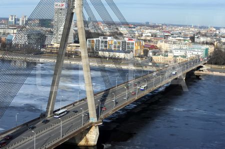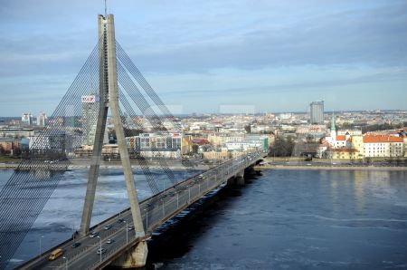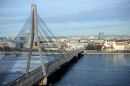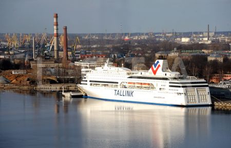 Skats no "Swedbank" administratīvās ēkas uz prāmi "Tallink" Rīgas ...
