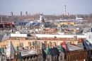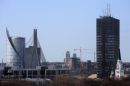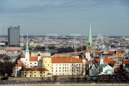 Skats no "Swedbank" administratīvās ēkas uz Rīgas pili un namu ...