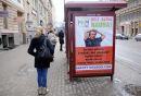 Sabiedriskās transporta pieturvietā Merķeļa ielā izvietota biedrības ...