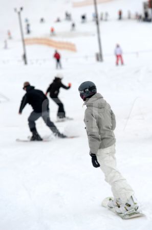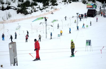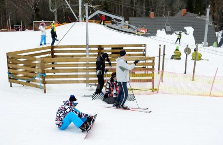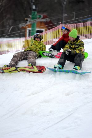 Snovbordisti un slēpotāji slēpošanas kompleksā "Žagarkalns".