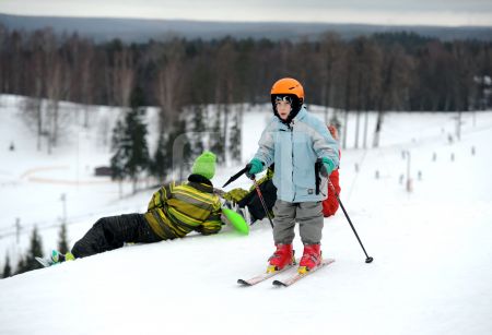 Любители зимнего спорта в лыжном комплексе "Жагаркалнс"